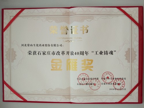 在石家庄市委宣传部、石家庄市工信局、石家庄市广播电视台、石家庄企业家协会团结举行的石家庄刷新开放40周年工业铸魂运动中,我公司荣获金雁奖,公司董事长、总司理高树华荣获优异企业家声誉称呼。