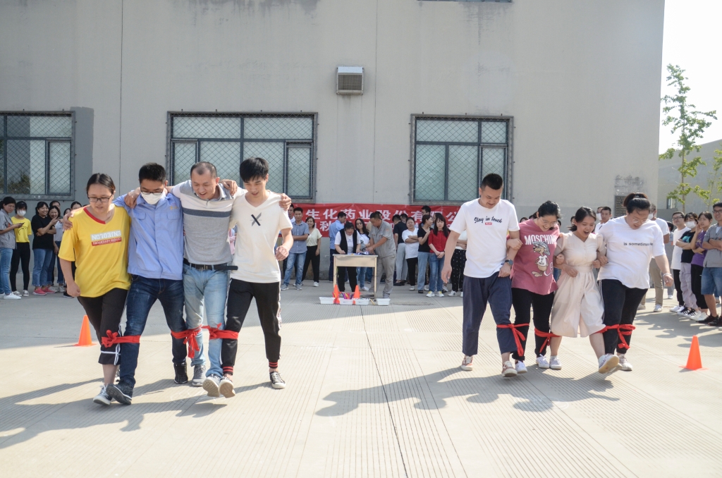 喜迎国庆,9月12日,随着评判员一声哨响,由各部分员工组成的4人团队,最先协力赛跑、踢球绕障碍、跳绳、踢踺子、套圈5个项目组合而成的意见意义体育接力角逐。